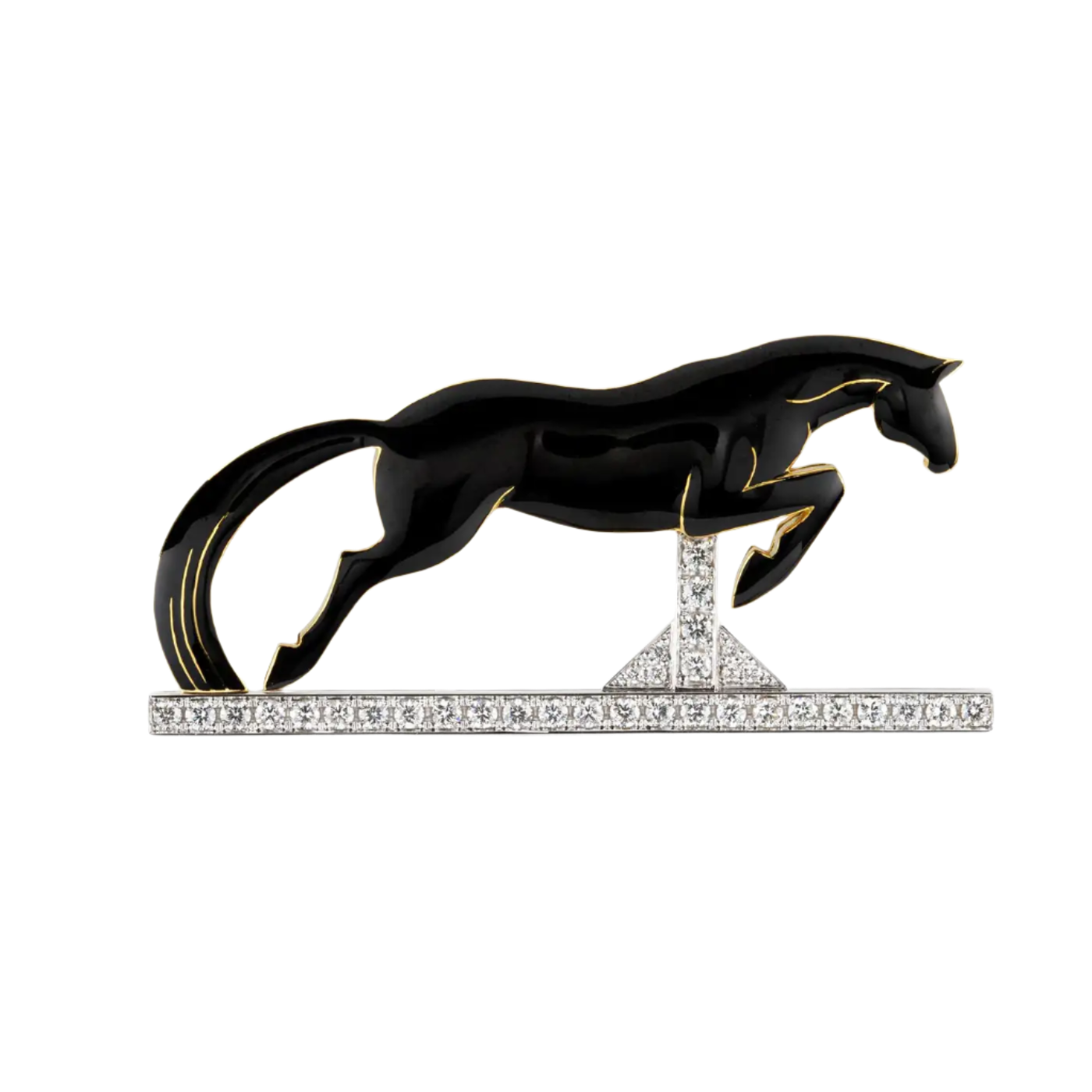 David Webb 18k Gold Platinum Black Enamel Diamond Horse Bracelet