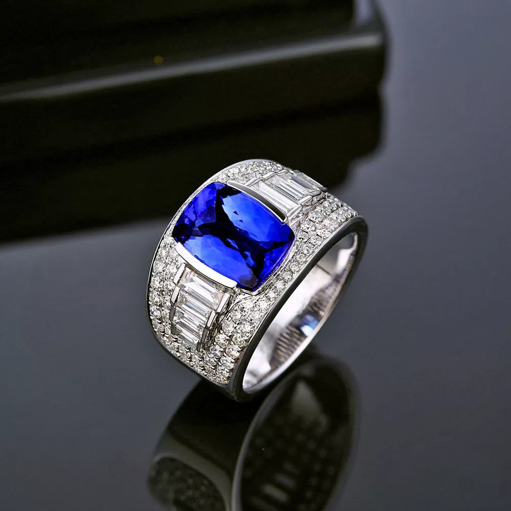 Exquisite Vintage Liquid Blue 14.30 Carat Tanzanite and Diamond Ring