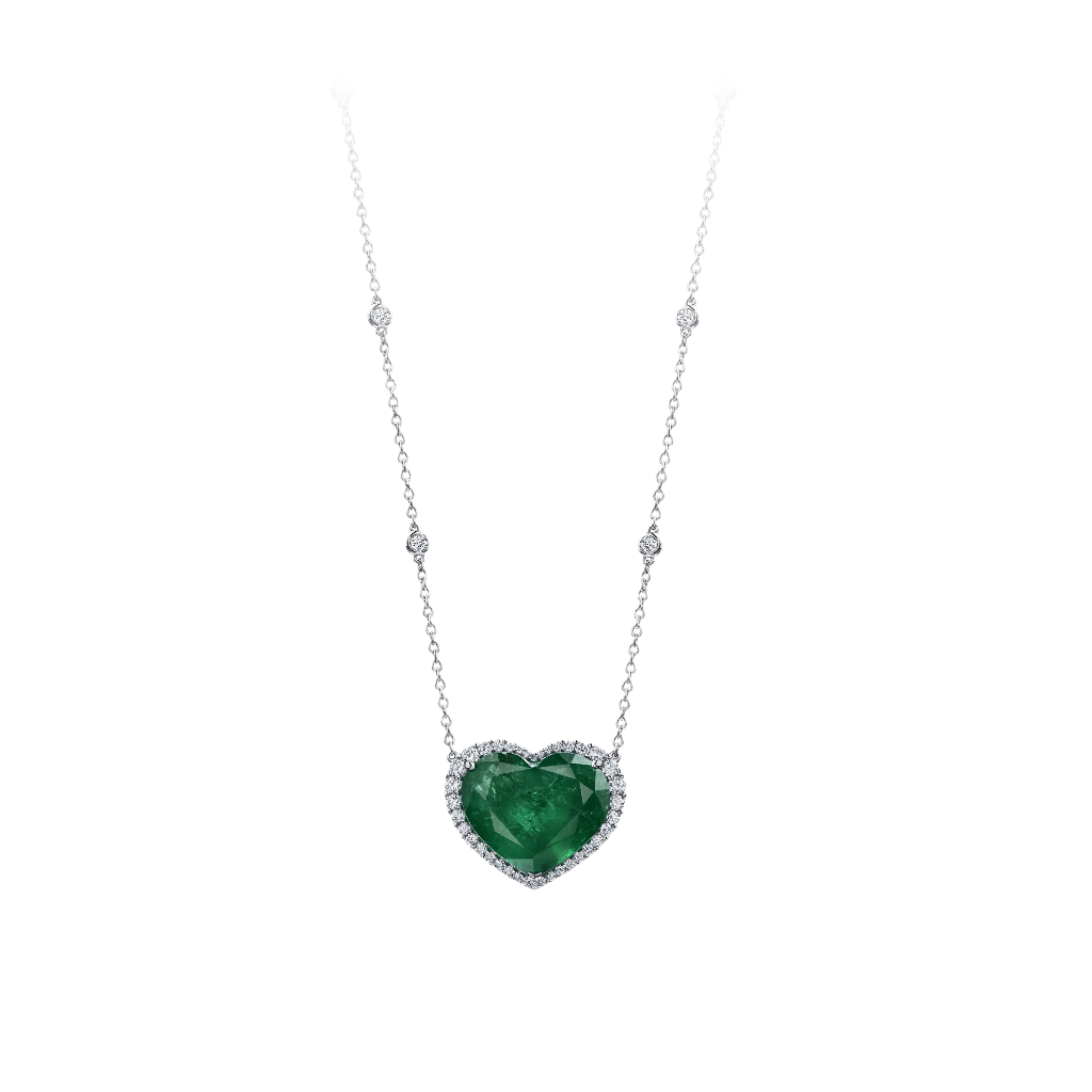 18k Solid White Gold Exclusive Heart-Shaped Colombian Emerald and Diamond Pendant 17.97 CTW18k Solid White Gold Exclusive Heart-Shaped Colombian Emerald and Diamond Pendant 17.97 CTW