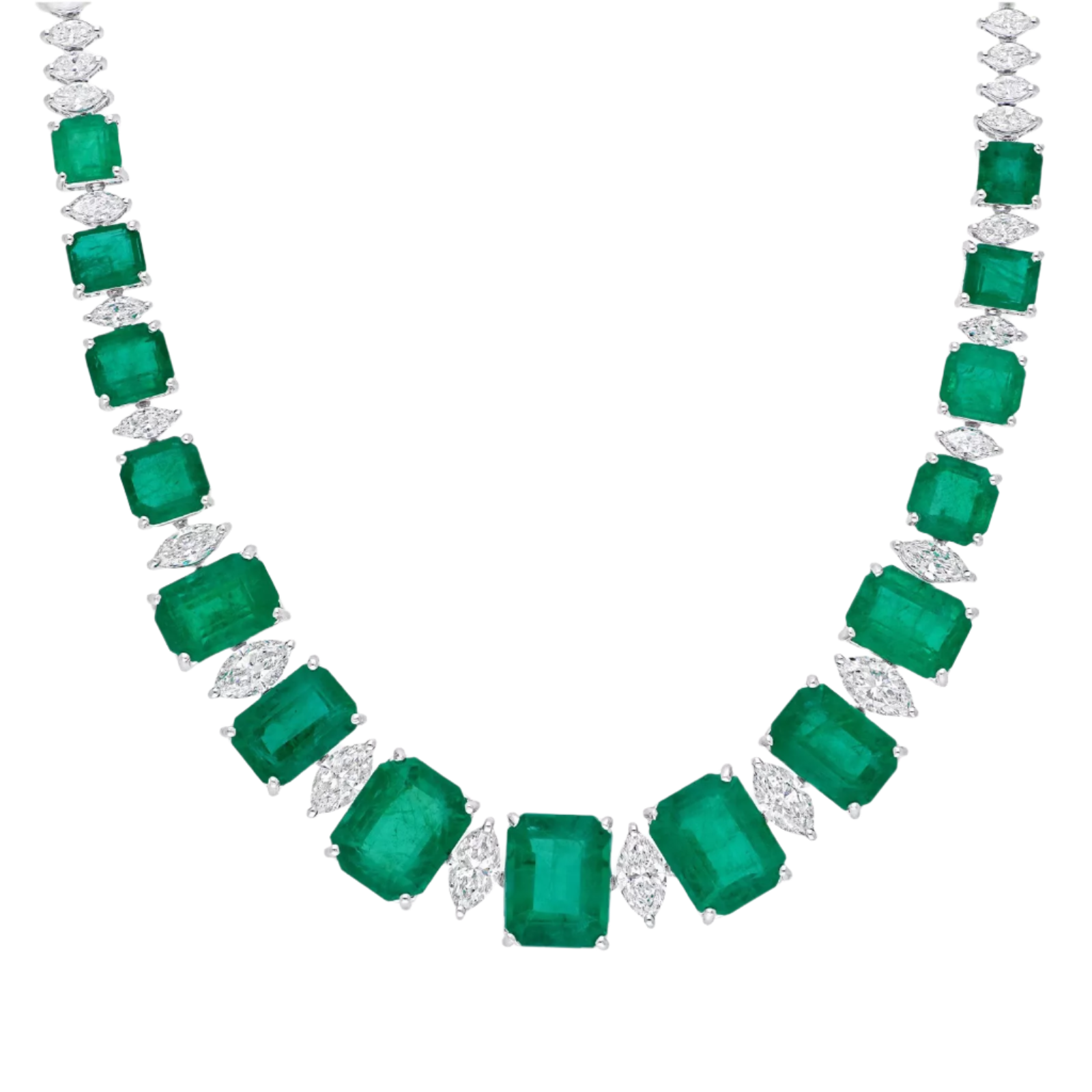 18k Solid White Gold Decorated Diamond and Colombian Emerald Necklace 55.40 CTW18k Solid White Gold Decorated Diamond and Colombian Emerald Necklace 55.40 CTW